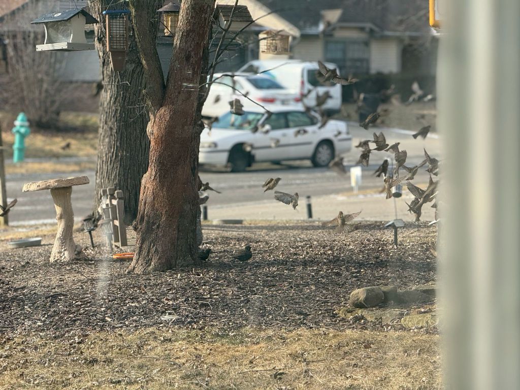 Eran rojos, azules y cafés, picoteando los granitos que la señora del al lado les arrojaba todos los días; esos pajaritos adornados de una imagen edénica excepta de hombres que les interrumpiera el plácido momento. Pijules, cardinales y unos cuantos que no conozco, como niños frente al parque corriendo, o mejor dicho, volando de un lugar a otro, eran los que alegraban mi vista después del despertar de mis distracciones.